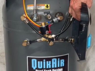 QuikAIr Dual Tank compressors last longer. Why? Stop the rust - You can drain the tank of water without waiting on next use. Plus less motor/pump run time makes for longer compressor life.